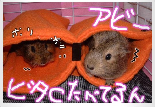 3匹のモルモット1匹のジャンハムと飼い主2人まったりしてます
