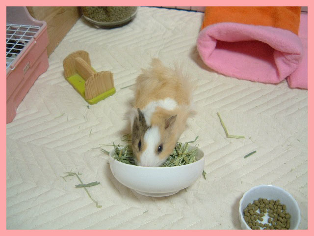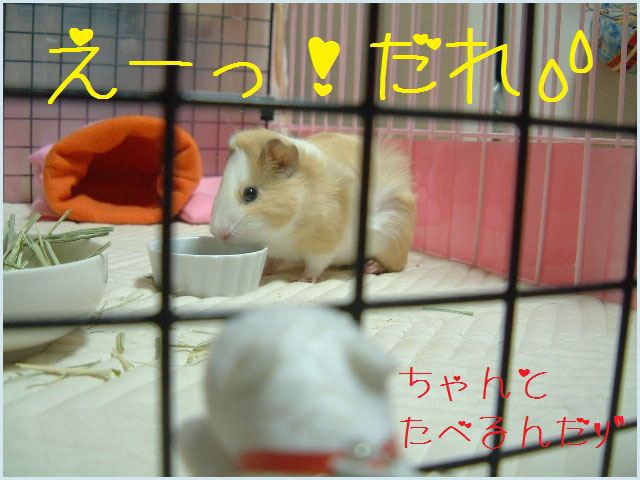 3匹のモルモット1匹のジャンハムと飼い主2人まったりしてます