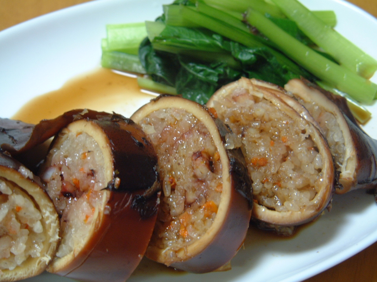 イカ飯を作った!!もるsの小松菜を横取りいたしました。色がキレイだから