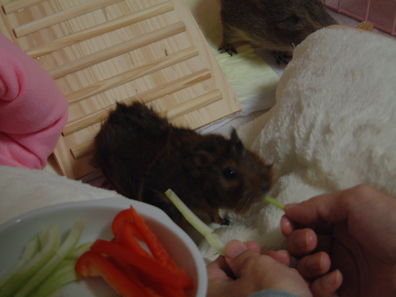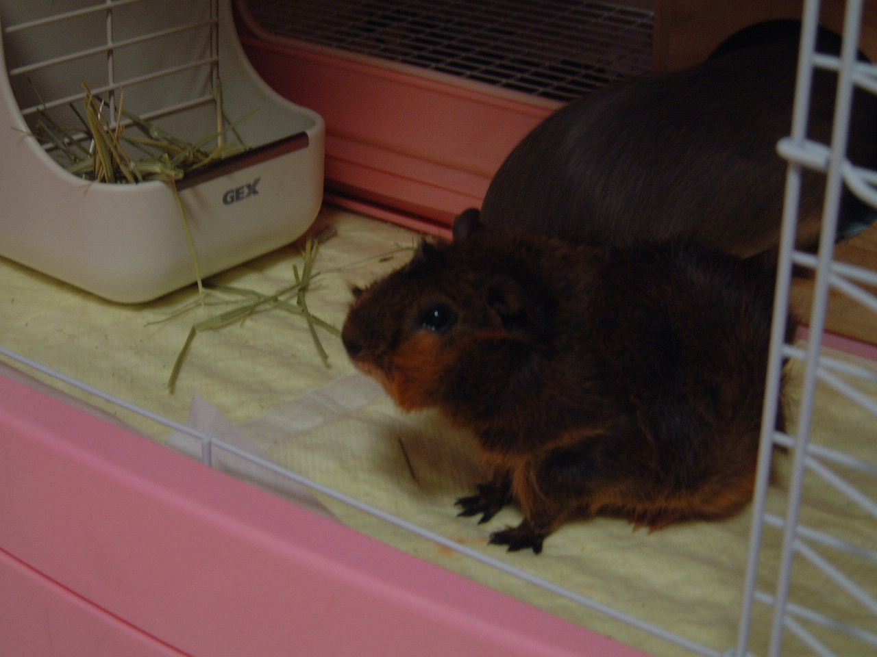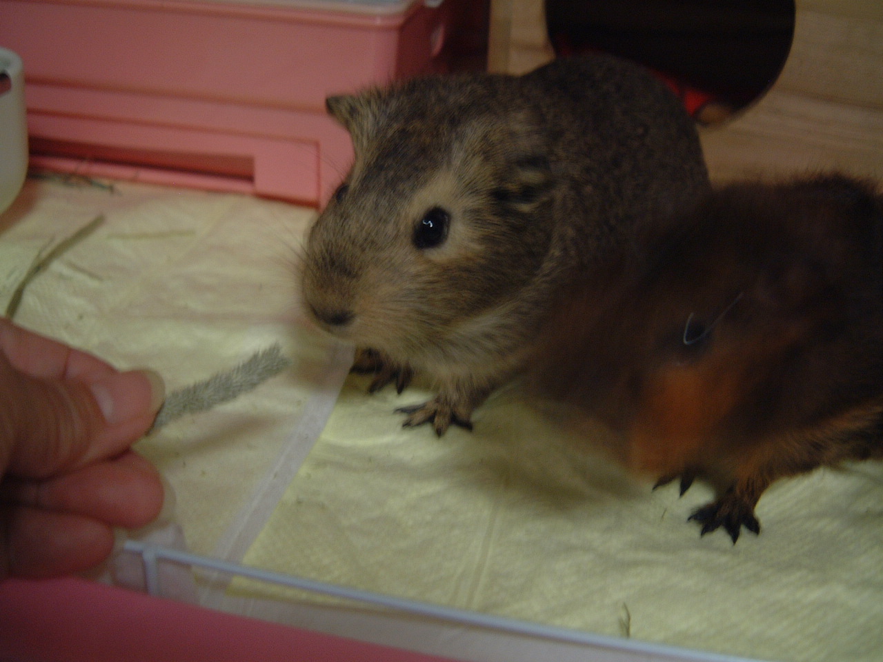 3匹のモルモット1匹のジャンハムと飼い主2人まったりしてます