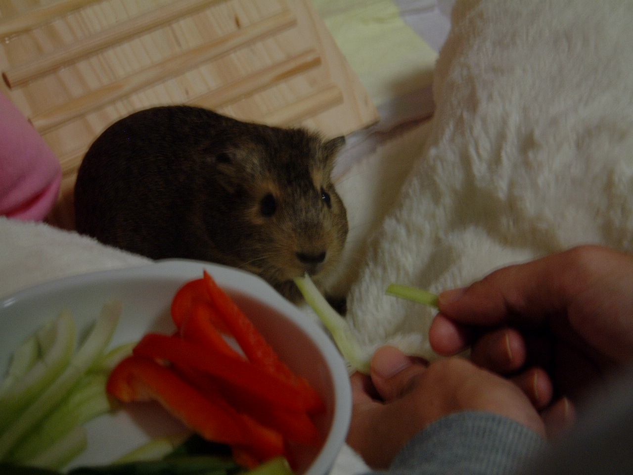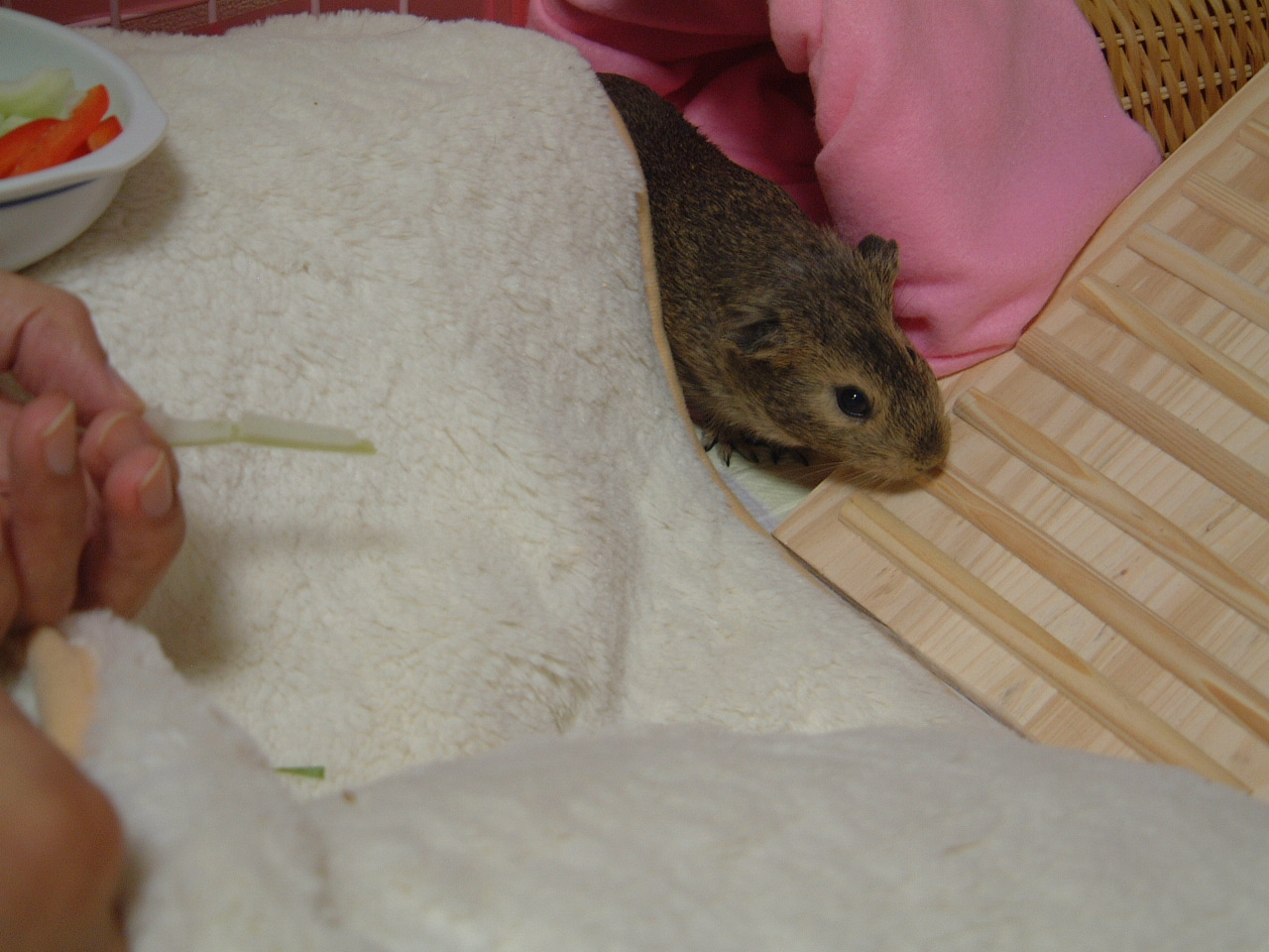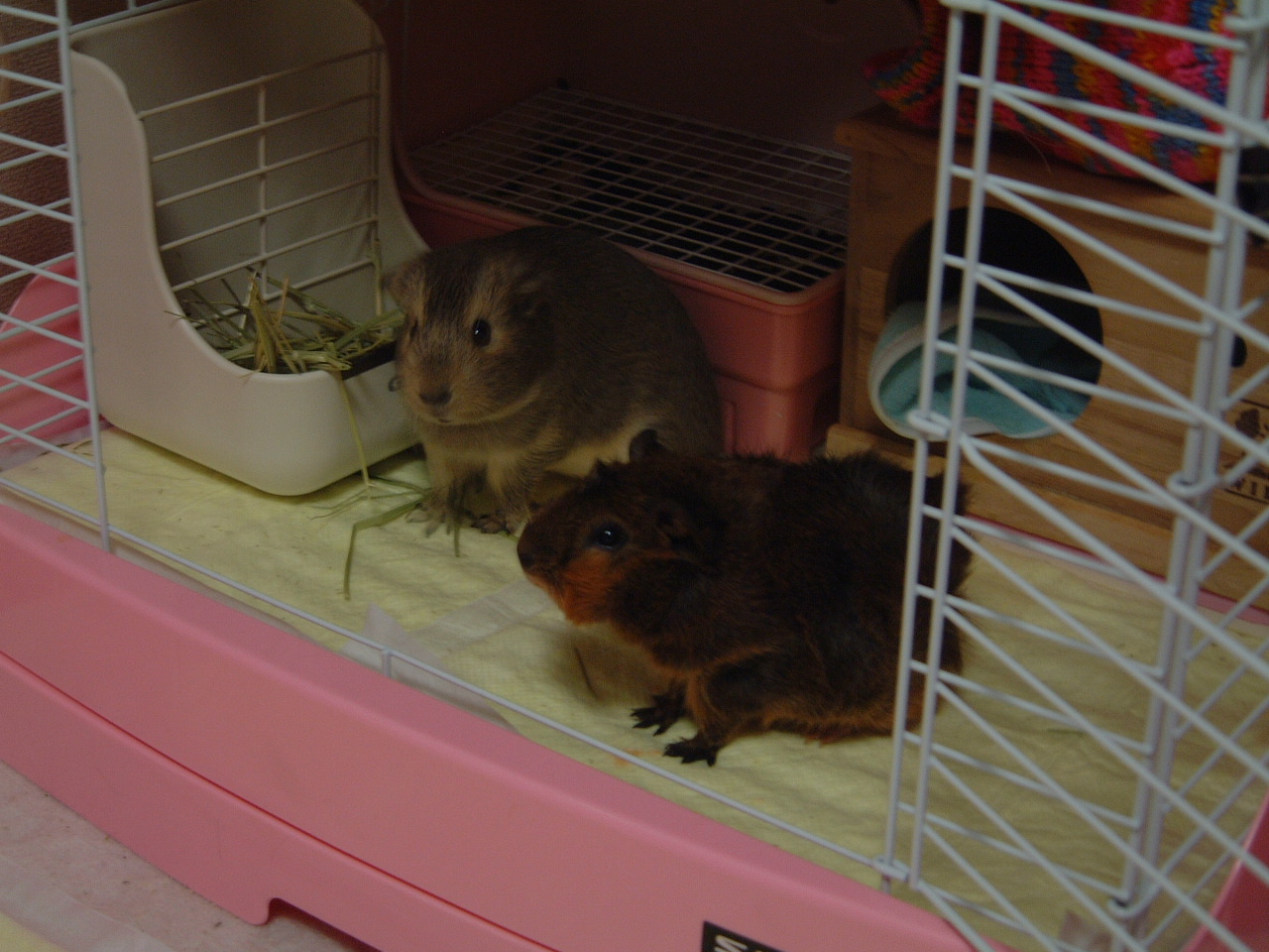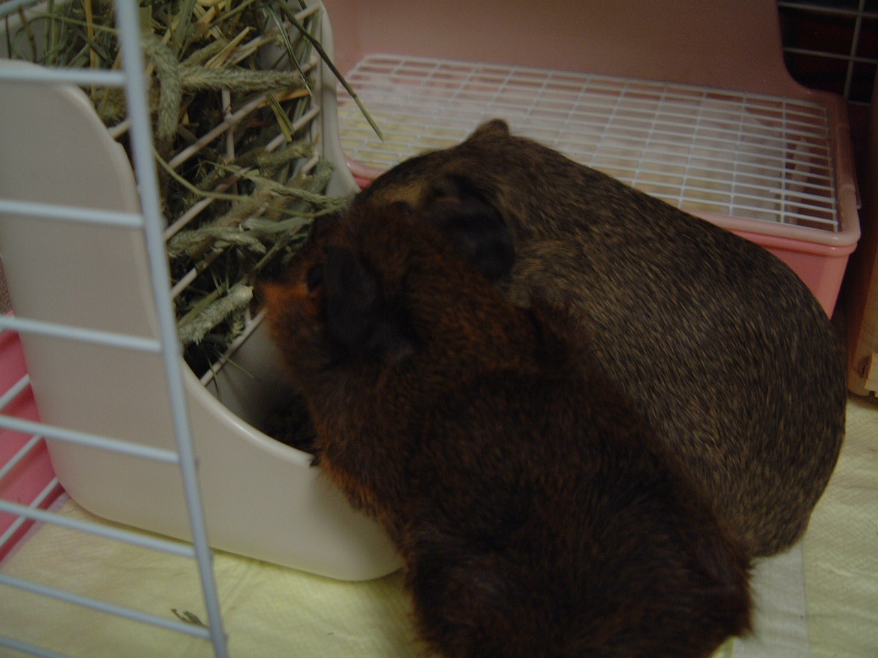 3匹のモルモット1匹のジャンハムと飼い主2人まったりしてます