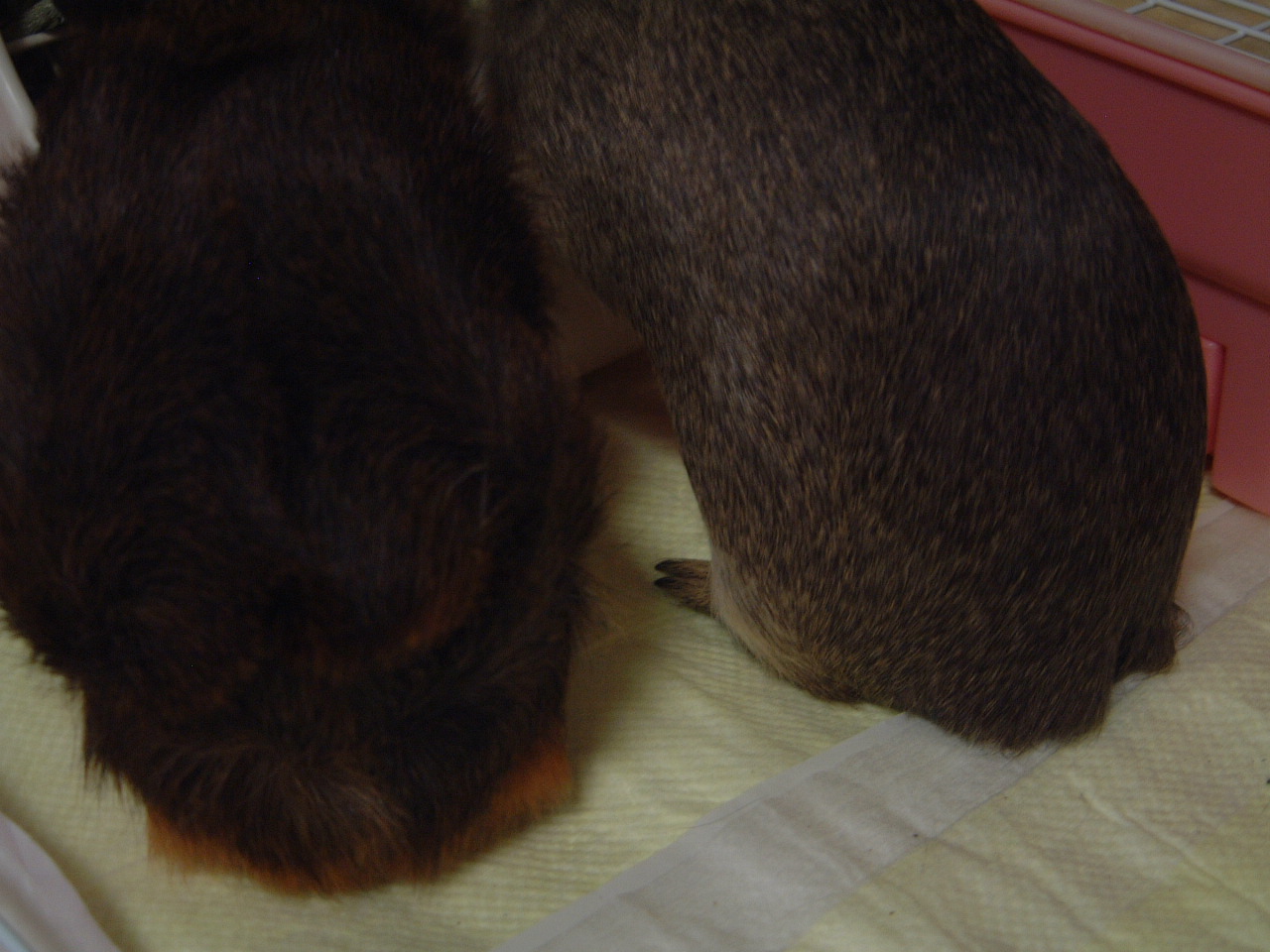 トフィーとアビーはゲージから出てきて主人の影に隠れたり